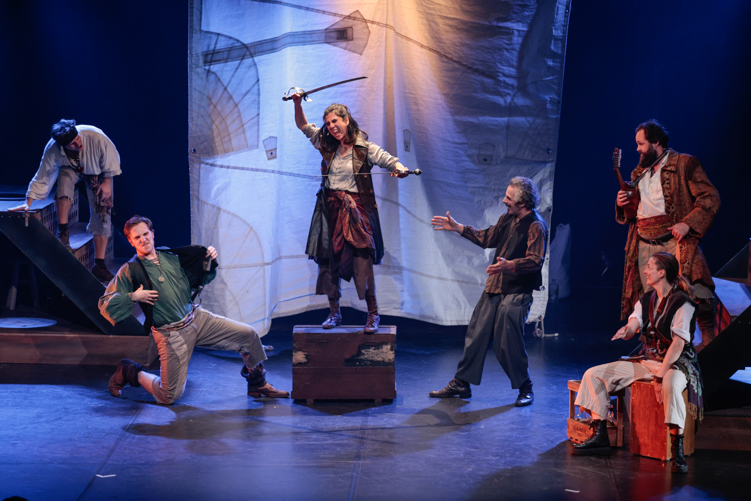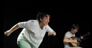 Durant le spectacle, cela oscille entre travail de plombier et labeur de sculpteur de plein air, entre artisan et artiste, entre travail manuel utilitaire et création fantasque. Entre celui qui construit le pratique et celle qui joue à l’imaginaire : un tuyau longue vue, un tuyau instrument à vent. Le jeu scénique ne cessera de passer d’une conception à l’autre.
